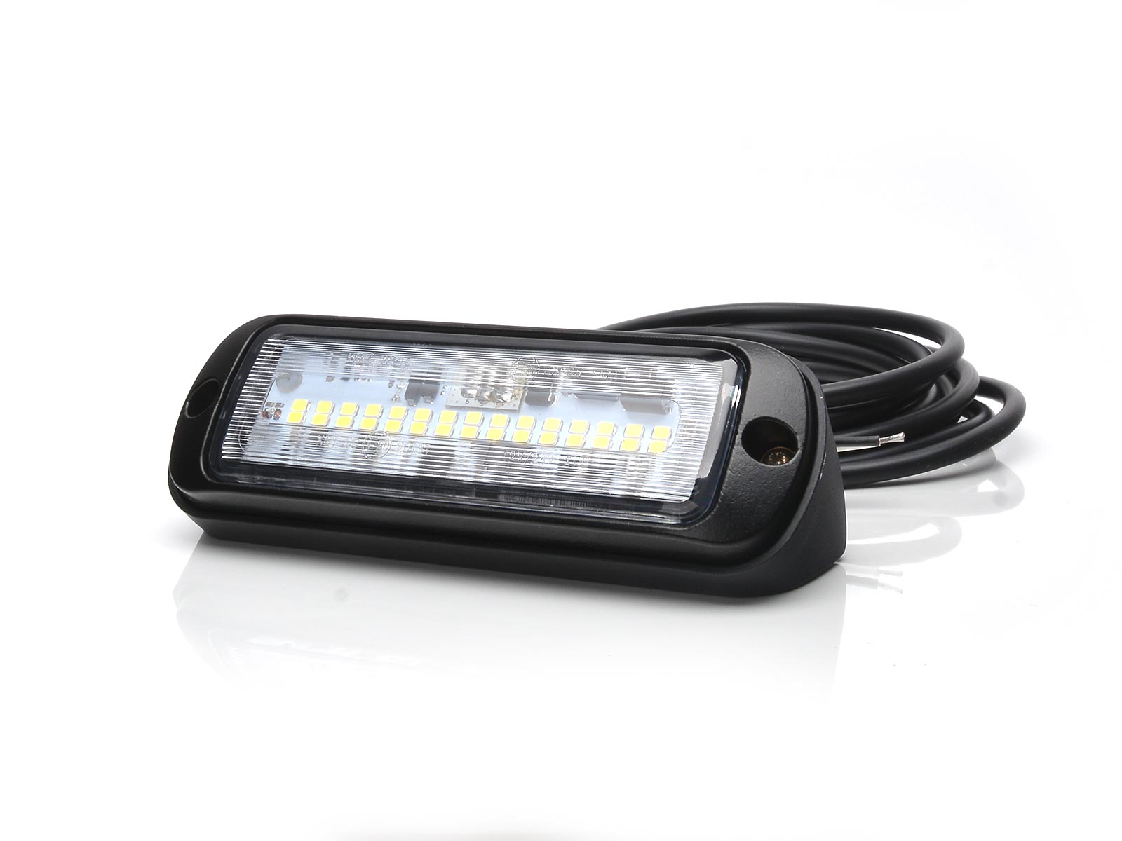 Denne helt flade arbejdslygte kommer med både flad og 45-graders monteringsbase.