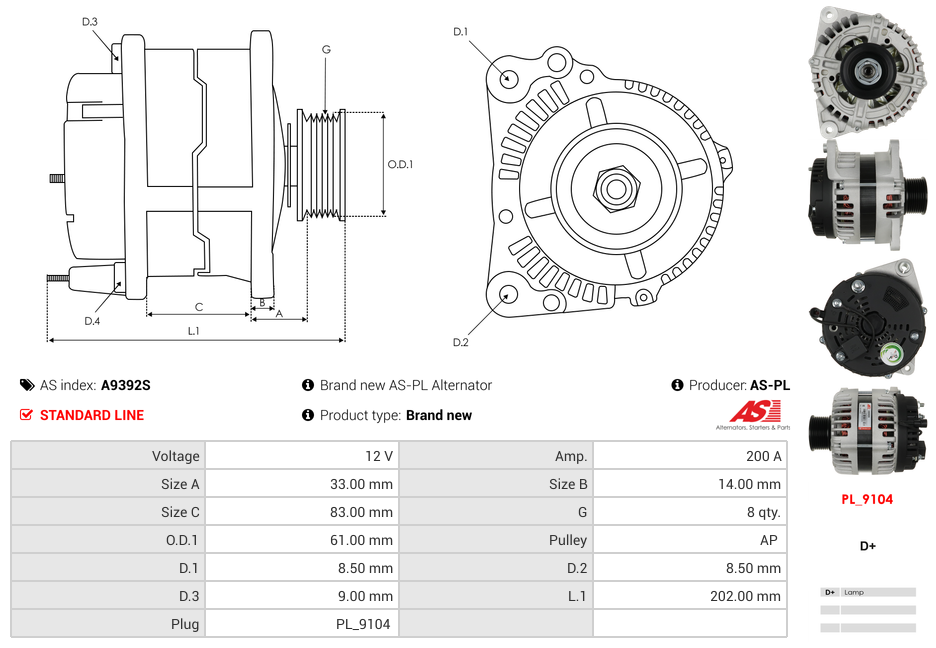 Generator 12V 200A (m/remskive)