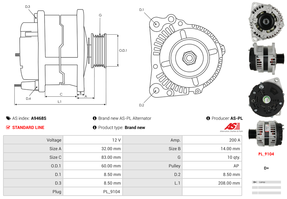 Generator 12V 200A (m/remskive)