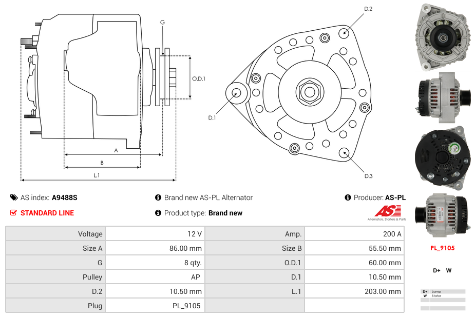 Generator 12V 200A (m/remskive)