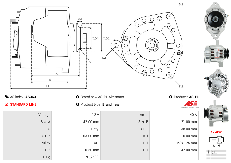 Generator12V 40A (m/remskive)