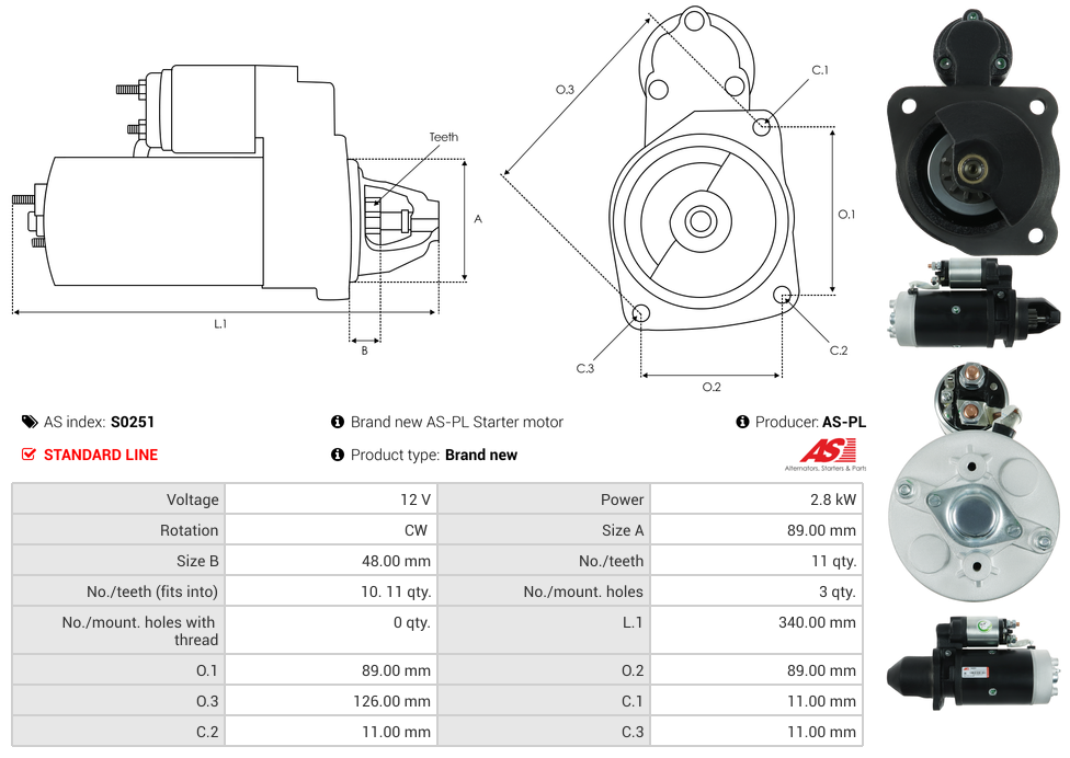Startmotor 12V 2.8kW (11 tænder)