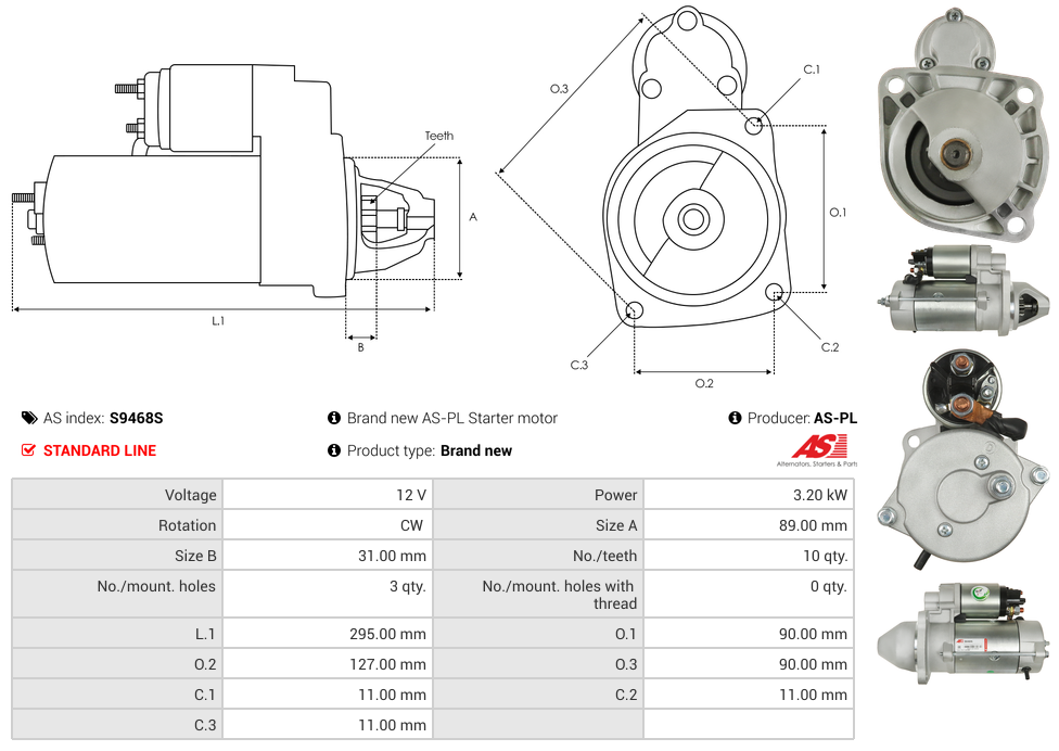 Startmotor 12V 3.0kW (10 tænder)