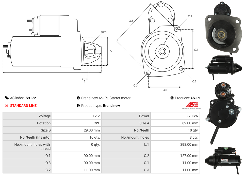 Startmotor 12V 3.2kW (10 tænder)