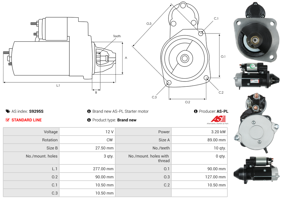 Startmotor 12V 3.2kW (10 tænder)