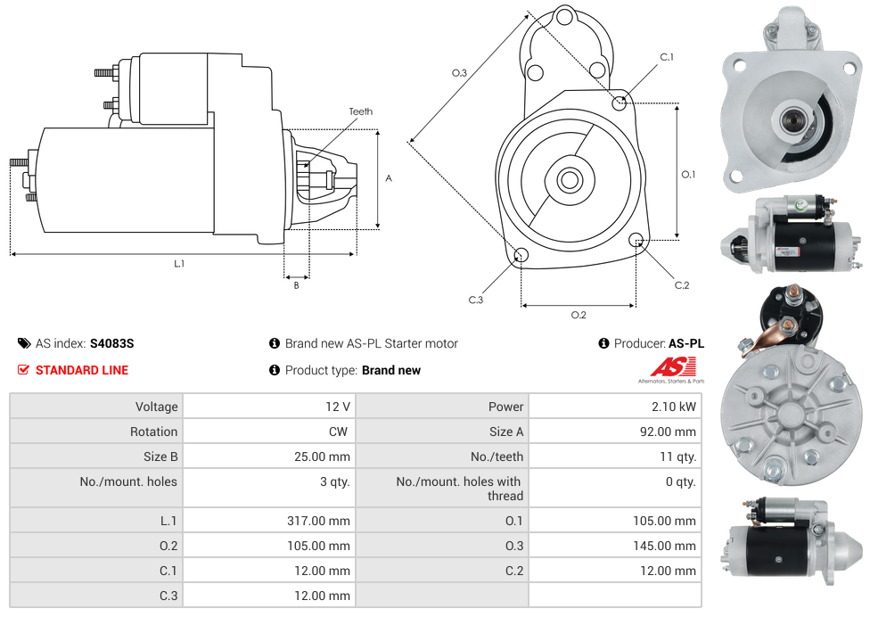 Startmotor12V 2.1kW (11 tænder)