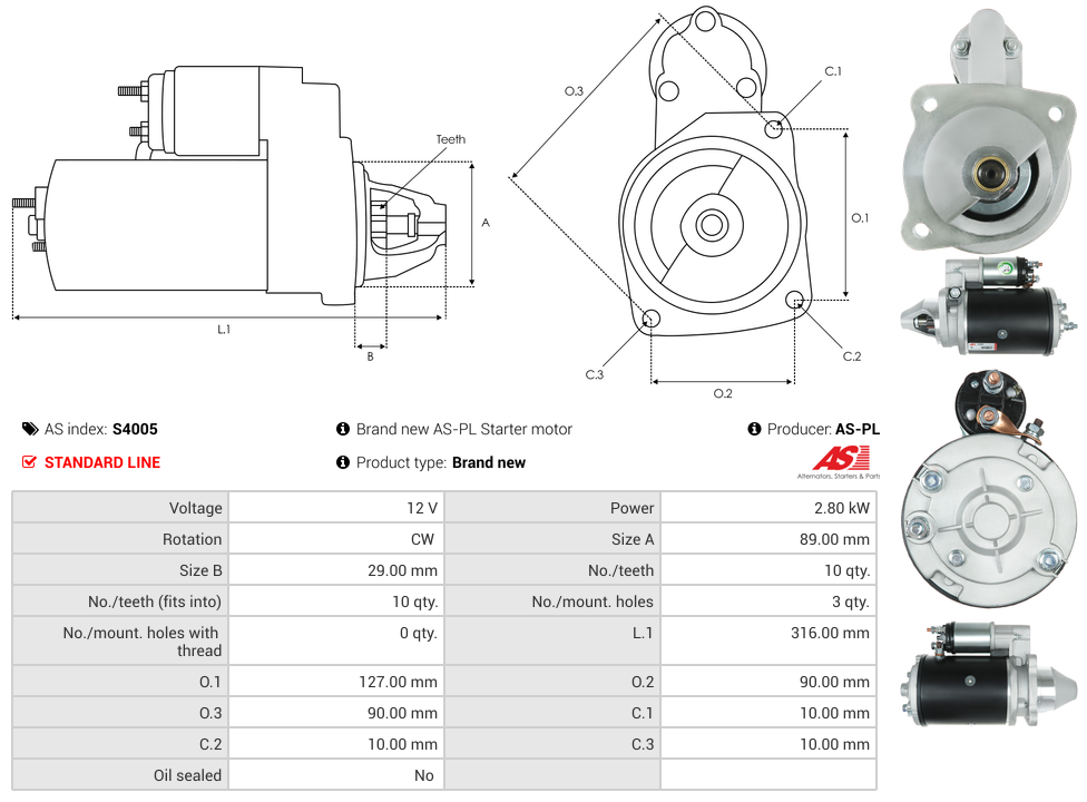 Startmotor12V 2.8kW (10 tænder)