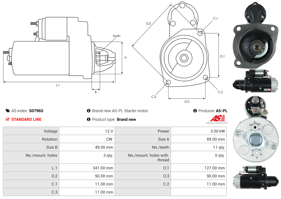 Startmotor12V 3.0kW (11 tænder)