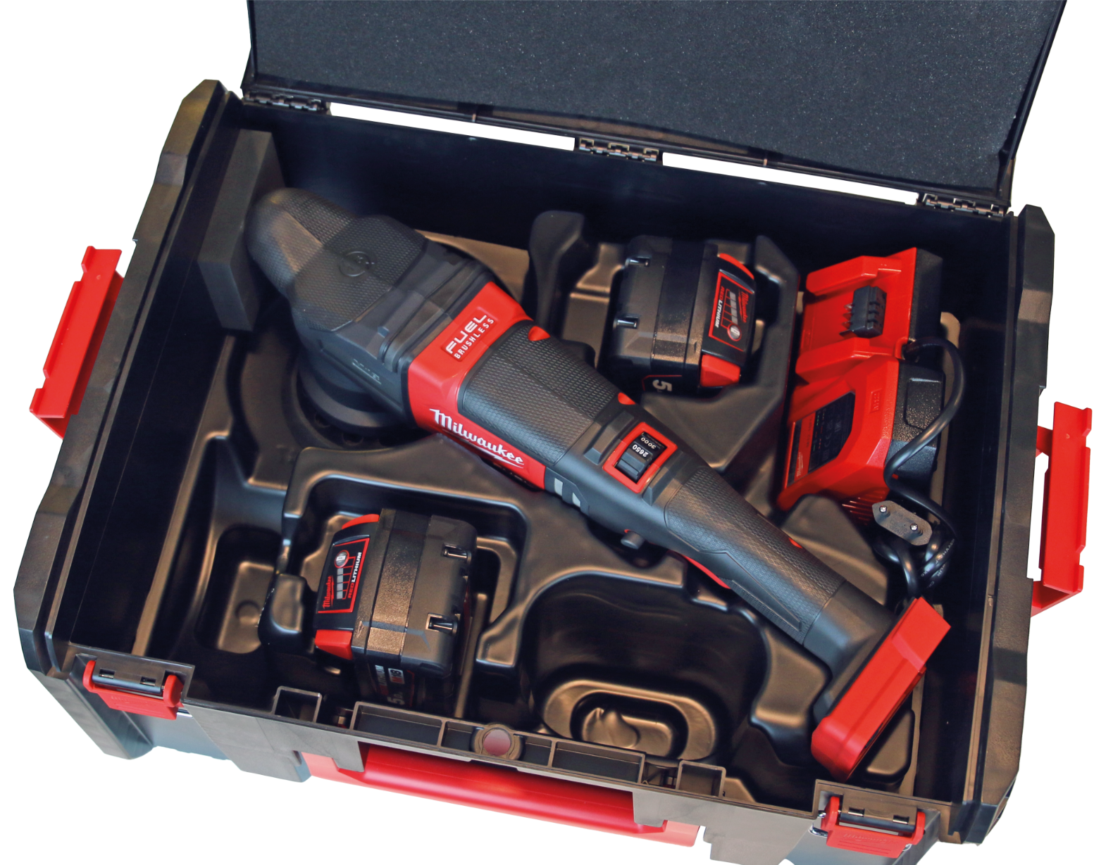 Denne polermaskine fra Milwaukee leverer samme ydeevne som 230V polermaskiner. Den klarer derfor tunge poleringsopgaver.